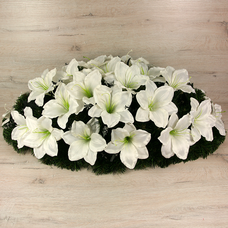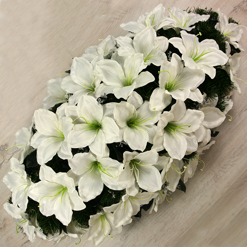 Získajte dotyk prírody bez starostí o udržiavanie s našou ikebanou amrilis s doplnkami x29 JX1643AMA. Táto nádherná ikebana vám prináša  krásu a živosť kvetín, bez toho aby ste museli dbať na zalievanie alebo slnečné svetlo. S rozmerom 85x41cm a pestrou paletou farieb, ikebana amarilis s doplnkami x29 je ideálna  k smútočným a spomienkovým príležitostiam. /Umelá ikebana smreková, plná na drôtenom podklade z pozinkovaného drôtu z amrilisov s tmavými lístkami/