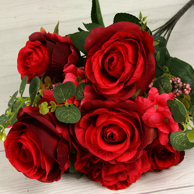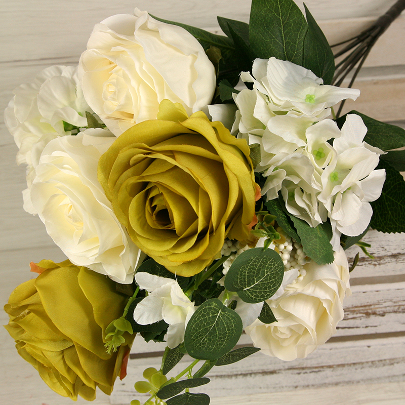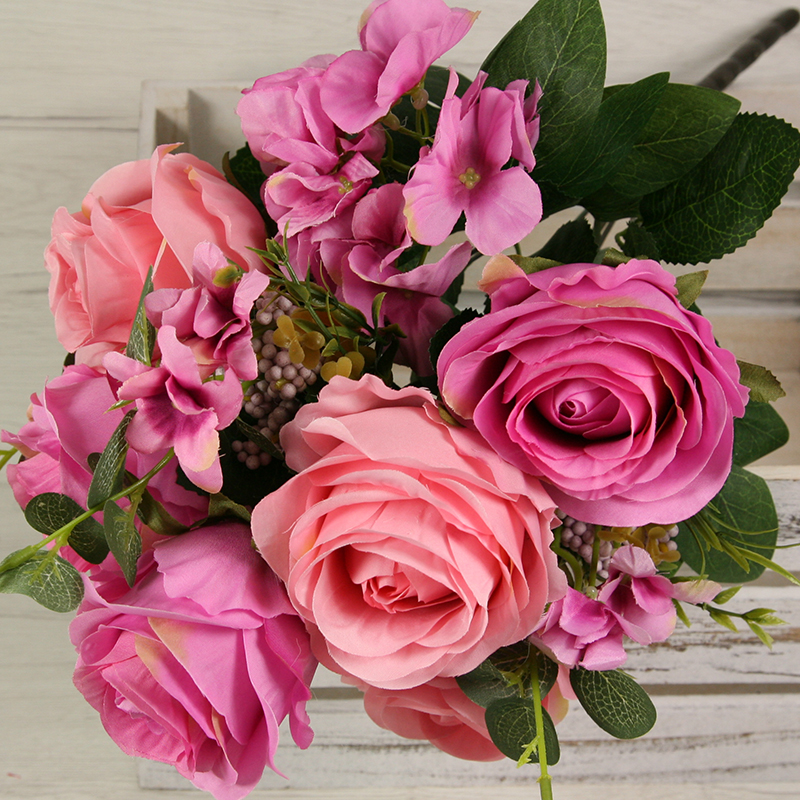Získajte dotyk prírody bez starostí o udržiavanie s našou kyticou ruža, hortenzia x11. Táto nádherná kytica prináša do vášho interiéru krásu a živosť kvetín, bez toho aby ste museli dbať na zalievanie alebo slnečné svetlo. S dĺžkou 53 cm a pestrou paletou farieb, kytica ruža, hortenzia x11 je ideálna na ozdobenie vášho domova, kancelárie alebo podujatia. Táto kytica z ruží a hortenzií sa môže tiež použiť do rôznych svadobných aranžmánov, smútočných vencov, nábytkových aranžmánov alebo iných dekoratívnych projektov.