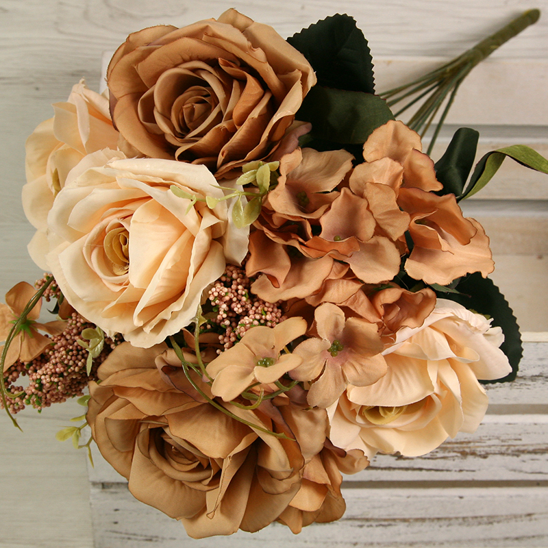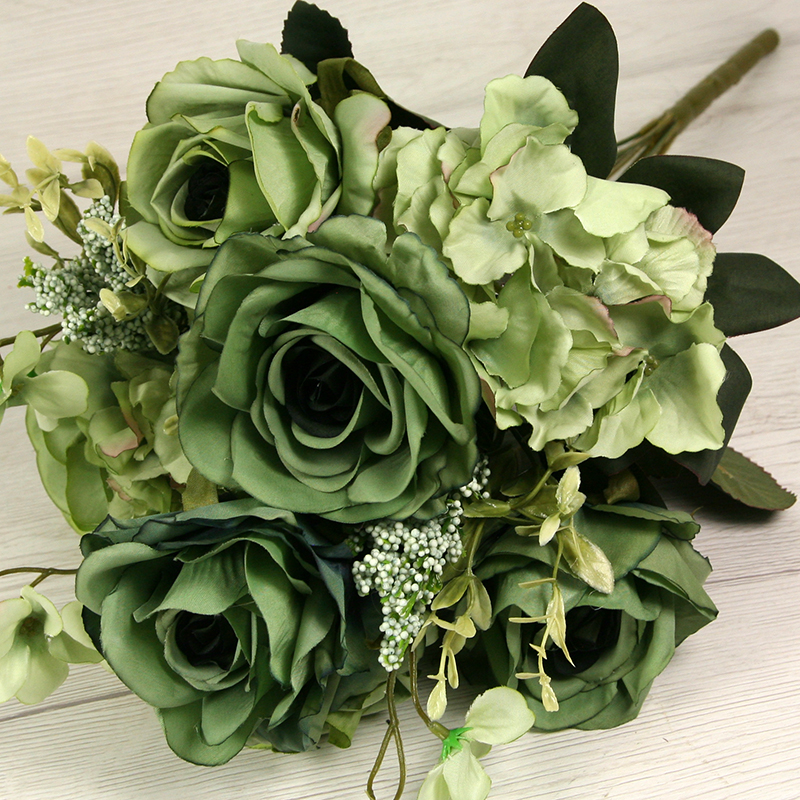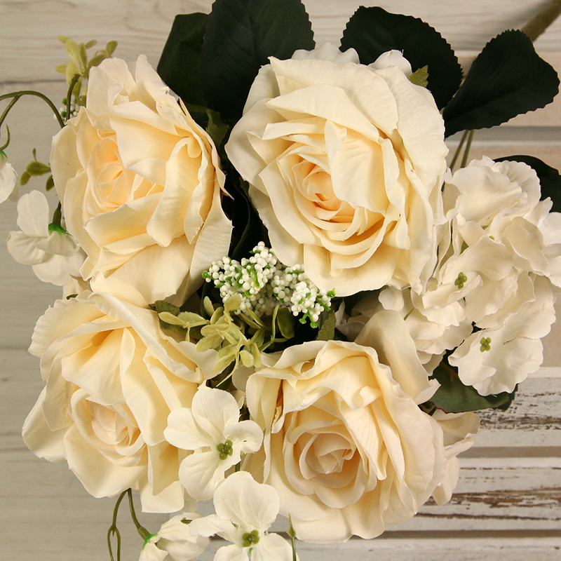 Získajte dotyk prírody bez starostí o udržiavanie s našou kyticou  ruža, hortenzia x11. Táto nádherná kytica prináša do vášho interiéru krásu a živosť kvetín, bez toho aby ste museli dbať na zalievanie alebo slnečné svetlo. S dĺžkou 47 cm a pestrou paletou farieb, kytica ruža s hortenziou x11 je ideálna na ozdobenie vášho domova, kancelárie alebo podujatia. Táto kytica z ruží a hortenzií x11 sa môže tiež použiť do rôznych svadobných aranžmánov, smútočných vencov, nábytkových aranžmánov alebo iných dekoratívnych projektov.